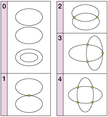 It's worth considering just how two closed figures, like ellipses, might intersect. If you think about it, you'll come up with these possibilities: