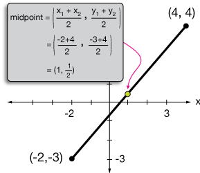 Now that we have a point (the midpoint of the original segment) and a slope (what we just calculated above), we have enough information to find the equation of our perpendicular line.