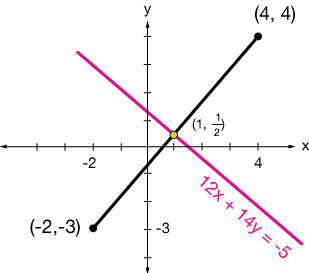 In that last step, I just multiplied everything through by 14 to get rid of the fractions. It makes for a neater result. Here's a picture of the two lines.