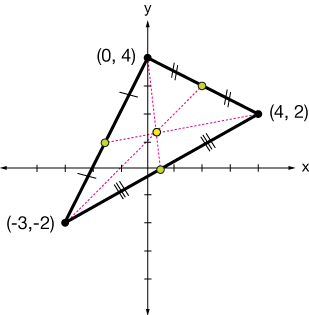 The midpoints of each line segment are found using the midpoint formula, as we did in the last problem.