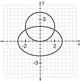 These are our two intersection points: $(-2.106, 1.524)$ and $(2.106, 1.524).$