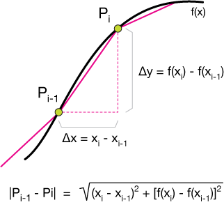 $$|P_{i - 1} - P_i| = \sqrt{(\Delta x)^2 + (\Delta y)^2}$$