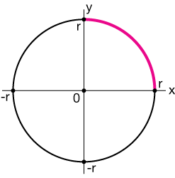 $$x = r\cdot \text{cos}(\theta), \; y = r \cdot \text{sin}(\theta) \phantom{00} \theta \in [0,2\pi]$$