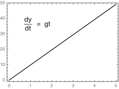 The graph is shown below ($dy/dt$ vs. $t$), and its slope is $g$.