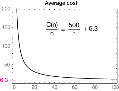 $$\frac{C(n)}{n} = \frac{500}{n} + 6.3$$