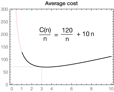 $$\frac{C(n)}{n} = \frac{120}{n} + 10 n$$