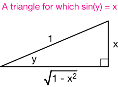 This solution isn't really what we want, however, because it's a function of $y$. To make it a function of $x$, we construct the triangle for which $sin(y) = x$.