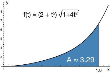 $$A = \int_1^0 (2+t^5) \sqrt{1+4t^2} \, dt$$