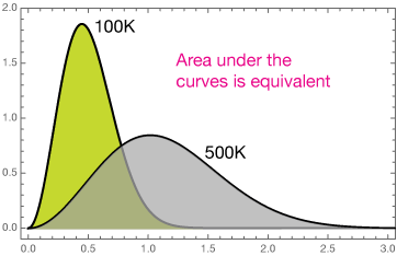 Here is a comparison of Maxwell-Boltzmann distributions for particles of the same mass at temperatures 100K - 500K.