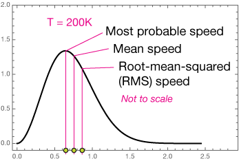 There are some convenient speeds we can calculate using the M-B distribution. Three are particularly useful, the most-probable speed, the mean speed and the root-mean-squared (RMS) speed.