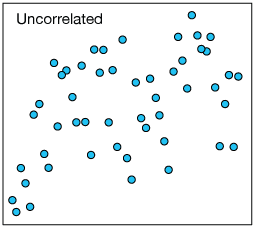 There is a spectrum of levels of correlation of two variables, from "very highly correlated" to "uncorrelated". Three examples are shown in the plots below.