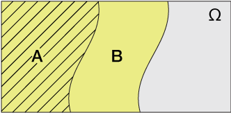 We'd like to prove that if $A \subset B,$ then $P(A) \le P(B).$ The symbol $\subset$ means "is a subset of." Here's the Venn diagram of the situation: