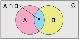 g. $P(A \cap B)$ consists of all elements in both sets A and B. There is only one, { 9 }, so the probability is $P(A \cap B) = \frac{1}{10}.$