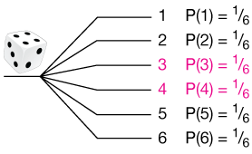 For example, the probability of rolling a 1 on a single role of a six-sided die is