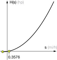 $$ \begin{align} H(50) &= 0.005(50)^2 \\[2pt] &\phantom{000} + 0.008(50) - 0.0035 \\[5pt] &= 12.9 \; \text{horsepower (hp)} \end{align}$$