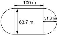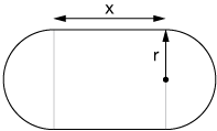 Now the perimeter of the field is the distance around the oval. It consists of two segments of length x, and the perimeter of a circle of radius r, p = 2πr (the circle is split, one side on each end). So the perimeter is