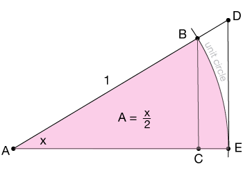 $$\frac{1}{2} \sin(x) \le \frac{x}{2} \le \frac{1}{2} \tan(x)$$