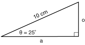 $$o = 10 \cdot sin(25˚) = 4.2 \; cm$$