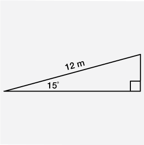 $$ \begin{align} sin(15^{\circ}) &= \frac{o}{12} \\[5pt] o &= 12 \cdot sin(15^{\circ}) = 3.1 \, \text{m} \end{align}$$