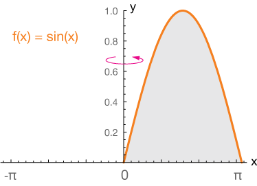 $$V = 2\pi \int_0^{\pi} x\cdot \sin(x) \, dx$$