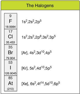 Now we're getting somewhere. We've used electron configuration and its manifestation in the periodic table to find a whole group of atoms that exist mainly as -1 ions.