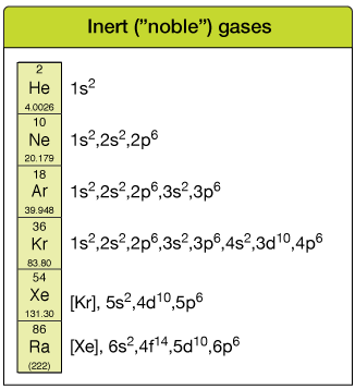 Note that when the electron configuration gets cumbersome, it's OK to abbreviate the "core" configuration using another inert gas symbol, usually in [ ].