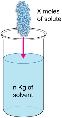 This figure ( → ) shows how to make an X-molal (X m) solution, where X is the number of moles of solute and n is the number of Kilograms of solvent.