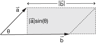 $$|\vec{a} \times \vec{b}| = |\vec{a}| |\vec{b}| \sin(\theta).$$