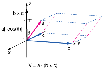 $$V = |\vec{a} \times \vec{b}||\vec{c}| \cos(\theta)$$