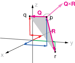 Here are our two new vectors R and Q that form the plane shown with the triangle.