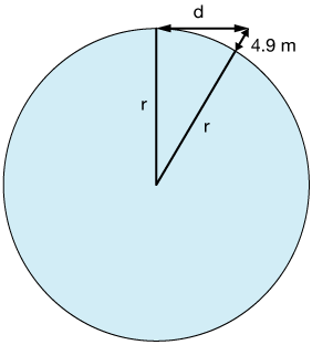 $$d^2 = (r + 4.9)^2 - r^2$$