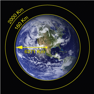 Most artificial Earth satellites orbit at between 160 and 2000 Km. The radius of Earth is about 6400 Km, so these are considered to be near-Earth orbits (NEO). The force of gravity on these satellites isn't that much smaller than on Earth, but they are actually in free-fall. At these altitudes it takes satellites between 90 min. and 2 hours to complete one orbit. The international space station has a 90-93 minute orbit at about 410 Km.