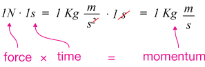 Now think about units. The unit of force is the Newton (1N = 1Kg·m·s-2), and if we multiply by time (in seconds), one of those seconds in the denominator divides out, and we get the units of momentum, Kg·m·s-1