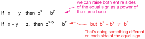 Here's the trouble. We can't just raise every individual term as a power of any base: