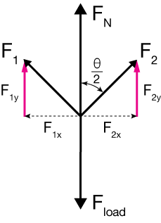 $$F_2 = \frac{F_{2y}}{\text{cos}\left( \frac{\theta}{2} \right)}$$
