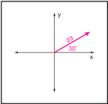 When the length of a vector and the angle it makes with either axis is known, we can use trigonometry to find the lengths fo the components along each axis.