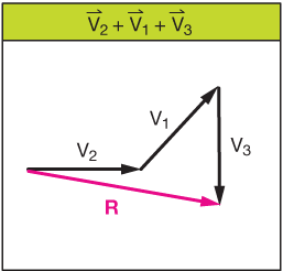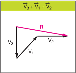Notice that regardless of the order of addition of vectors (all six possible orders of adding three vectors are shown here), the resultant or sum vector, $\vec R$ (in