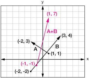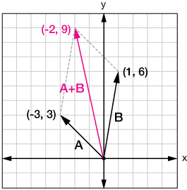 Add vectors $\vec{A} = (-3, \, 3)$ and $\vec{B} = (1, \, 6).$ These vectors both originate from $(0, 0).$