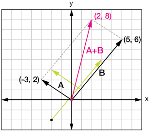 (-3, 2) + (5, 6) = (2, 8), just what we got on the first try. Easy peasy.