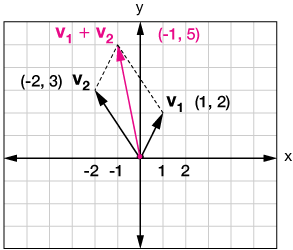 $$ \begin{align} \bar{v}_1 + \bar{v}_2 &= (-2 + 5, -5 + 4) \\[5pt] &= \bf (3, -1) \end{align}$$