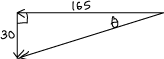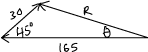 $$\frac{sin(\theta)}{30} = \frac{sin(45)}{152.2}$$