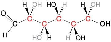 Except where double or triple bonds exist in molecules, every carbon atom is a tetrahedral center, with just such a structure, because of sp3 orbital hybridization. The figure below depicts one of the structures of glucose. The five carbon atoms in
