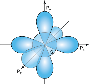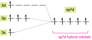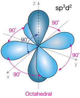 A further orbital hybridization, sp3d2, consisting of one part s-orbital, three parts p-orbital and two parts d-orbital is possible, and leads to octahedral symmetry by forming six identical orbitals.