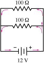 $$R_{total} = \left( \frac{1}{100} + \frac{1}{300} \right)^{-1} = 75 \, \Omega$$
