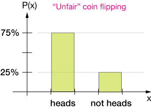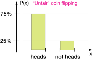 Here are a couple of examples of discrete probability distributions. In the first, we'll imagine that we have an "unfair" coin, one that comes up heads 75% of the time and tails the rest. Here's the discrete distribution:
