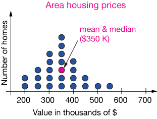 Now, as shown on the graph, the mean has shifted to a value of \$536,000, which is higher than the price of most houses in the area. In this case, the mean might not be representative of the true housing situation for a family looking to buy a home in the area.