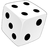 Similarly, if we roll a six-sided die ("die" is the singular of dice), the probability of rolling a one, or any one of the six numbers, as long as we specify it first, is one out of 6, or 1:6 or $\frac{1}{6}.$