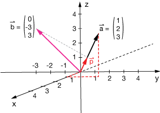 $$ \begin{align} s &= \frac{\vec{a}}{|\vec{a}|} \cdot b \\[5pt] &= \left( \frac{-1}{\sqrt{14}}, \frac{2}{\sqrt{14}}, \frac{3}{\sqrt{14}} \right)\cdot (1, 2, 4) \\[5pt] &= \frac{-1}{\sqrt{14}} + \frac{2}{\sqrt{14}} + \frac{12}{\sqrt{14}} \\[5pt] &= \frac{13}{\sqrt{14}} \end{align}$$