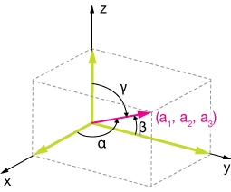 $$\frac{1}{|\vec{a}|} \vec{a} = (\cos(\alpha), \, \cos(\beta), \, \cos(\gamma)).$$