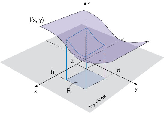 Now that region $R$ can take on many forms. It can be rectilinear or curved, and much of our job in this section will be to define the limits of integration.